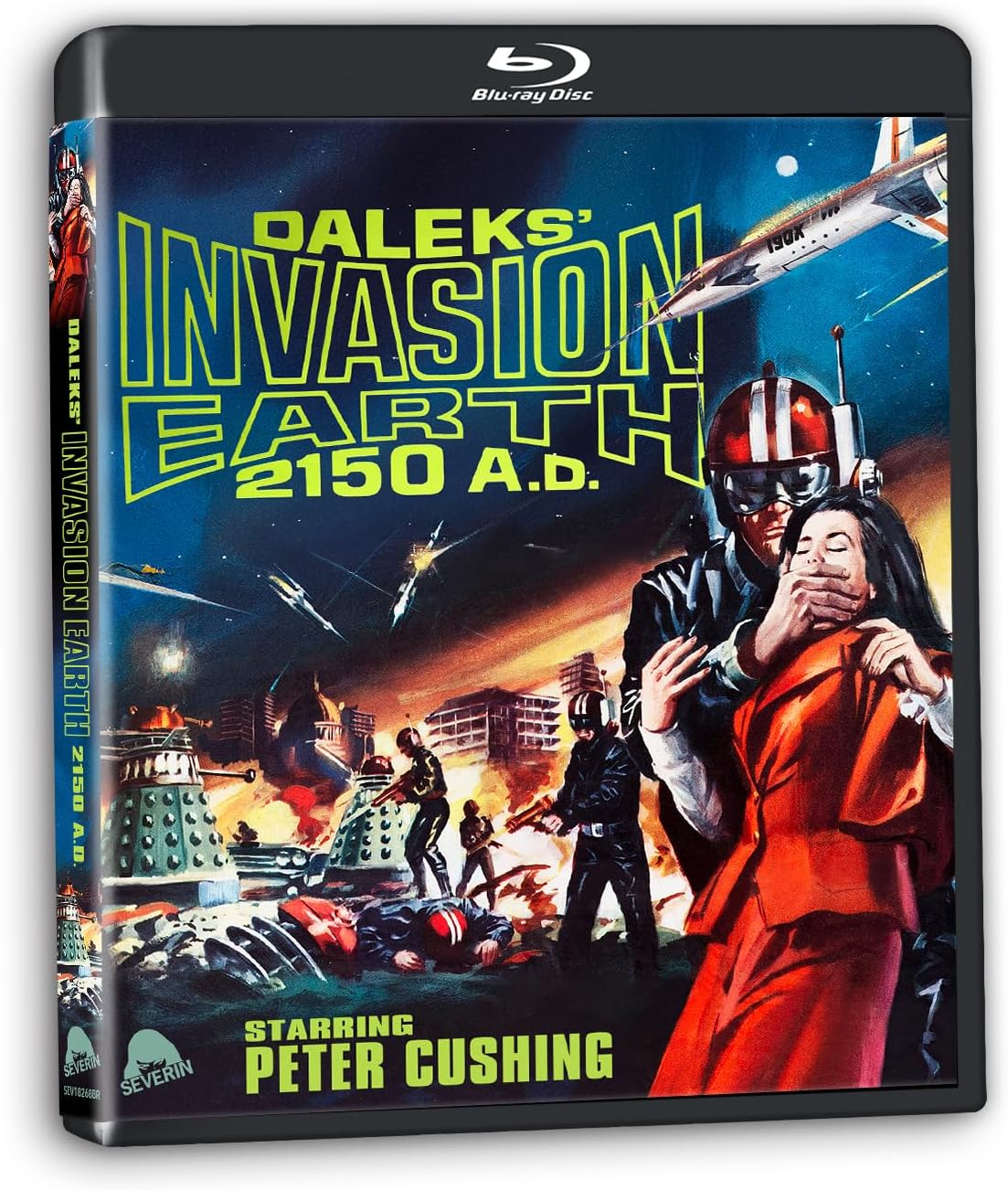 Note: Contains two discs, each with identical content — one being a 4K Ultra HD disc and the other a regular HD Blu-Ray. Cover blurb: Regenerated in out of this world 4K, Daleks’ Invasion Earth 2150 A.D. directed by Gordon Flemyng, stars Peter Cushing in his return to the big screen as British TV’s most iconic sci-fi hero, Dr. Who. The earth of 2150 A.D. is a desolate and hostile ruin of a planet, crumbling at the edge of civilisation, slowly disappearing into the darkness of space. For the future of planet earth now belongs to The Daleks, a destructive army of alien invaders who have turned humans into cowering slaves. Meanwhile deep within the London Underground a group of resistance freedom fighters are planning an attack. But there’s only one man who could possibly help them succeed in destroying their extra-terrestrial enemies and take back control of planet earth. A man of mystery, a man of time and space, a man known only as... The Dr. [sic] SPECIAL FEATURES